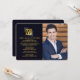 A sophisticated graduation invitation in deep blue with a gold accent for your initial. Just add your party details and photo to make it yours. (<a href='https://www.freepik.com/free-vector/premium-letter-e-concept-logo-design_1385071.htm'>Designed by Freepik</a>). <br/><br/>The card is easy to customise with your wording, font, font colour and choice of six paper types.<br/><br/>Not exactly what you're looking for? All our products can be custom designed to meet your needs at no extra charge.<br/><br/>Simply contact us at heartfelthelper@gmail.com<br/><br/>Coordinating products available: