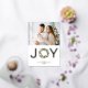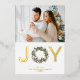Gold Joy Foil Holiday Card. This winter gold foil joy holiday card features hand-painted watercolor greenery and pinecones arranged as a beautiful wreath with a family photo. The back includes a matching pattern. Find matching items in the Pinecone and Greenery Christmas Holiday collection.