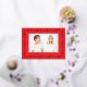 REAL FOIL GOLD - Joy Joy Joy RED Frame Holiday Christmas Photo Card, Christian wishes. Your photo on the back or current floral backing pattern. Big photo design. Happy, festive design. A frame made up of the word JOY JOY JOY repeated.