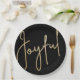 Joyful in a faux gold foil script on these black paper plates in 2 sizes, are stylish for any Christmas holiday occasion or give as a hostess gift. MATCHING items in our store.