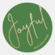 Gold JOYFUL on Green Christmas Classic Round Sticker