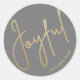 Gold JOYFUL on Grey Christmas Classic Round Sticker