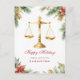 Gold Justice Scale Holly Pine Lawyer Christmas Holiday Cards with Personalised Message