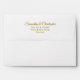 This beautiful wedding envelope is features a chocolate brown or auburn coloured inside flap with gold floral curls and swirls, and a printed return address on the back. The design is understated and simple, yet classic, chic and ornate. Perfect way to make your wedding invitations all the more special.