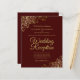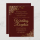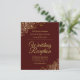 These affordable, budget friendly wedding reception invitations are the perfect choice for class, style, and beauty on a budget. Designed for guests who are invited to the reception but not the ceremony, they feature an auburn or chocolate brown coloured background with ornate golden faux foil lace frills in the corners. The typography includes fancy gold script lettering for a style that is at once simple and elegant. Wonderful way to invite your friends and family to share in your joy on your special day without breaking the bank.