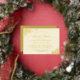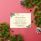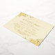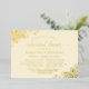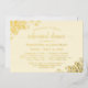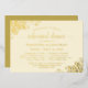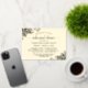 This beautiful rehearsal dinner invitation features an elegant design with gold foil printing on an ivory or cream colored background. The design features fancy script calligraphy with golden lace curls and swirls in the corners. There is space for information on both the wedding rehearsal and the dinner. Wonderful way to thank the bridal party while making sure they have all of the info they need.