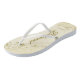 These elegant wedding flip flops are a great way to thank and recognise your bridesmaids, while giving their feet a rest after a long day. The beautiful design features an elegant design with golden lace frills on an ivory or cream coloured background and fancy gold coloured script lettering. The text reads Bridesmaid with her name below. Great way to thank her for being part of your special day!