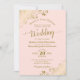 Gold Lace on Blush Pink Elegant Formal Wedding Invitation