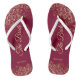 Dance the night away with these beautiful wedding flip flops. Designed for the bride, they feature a simple yet elegant design with gold colored script lettering on a burgundy, maroon, or wine red colored background and fancy golden lace curls and swirls. Beautiful way to stay fancy and appropriate while giving your feet a break after a long day.