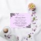 This beautiful rehearsal dinner invitation features an elegant design with gold foil printing on a pale lilac purple coloured background. The design features fancy script calligraphy with golden lace curls and swirls in the corners. There is space for information on both the wedding rehearsal and the dinner. Wonderful way to thank the bridal party while making sure they have all of the info they need.