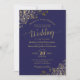 Gold Lace on Navy Blue Elegant Formal Wedding Invitation