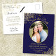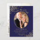 Gold Lace on Navy Wedding Save the Date Oval Photo Announcement Postcard
