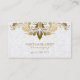 Elegant white plush floral damasks background with gold tones vintage swirly floral lace. Fully customisable double sided business card template.