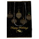 Happy Holidays- gold lanterns and dust over black background. Customisable gift bags template