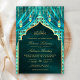 Gold Lanterns Teal Curtain Muslim Wedding Invitation