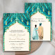 Gold Lanterns Teal Indian Couple Wedding Invitation