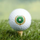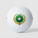 A white golf ball image is at the centre, with crossed golf clubs behind it on a circle of green. Surrounding the circle is a gold laurel leaf emblem with a star at the bottom. Your name is in matching green at the top.