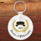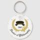 Doctor of Philosophy PhD Degree Graduation Gold Laurel Wreath Keychain. Celebrate your Ph.D. graduation with this cool design. Features a gold laurel wreath encircling a black stylised academic doctoral beefeater (a modified tam), with the degree letters "PhD" underneath. The degree "Doctor of Philosophy" is written in fancy calligraphy around the outside of the golden wreath. The design is placed on top of a grey multiple beefeater background pattern. You can change the background colour to whatever colour you prefer. Separate designs available for masters and bachelors degrees.