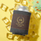 Gold Laurel Wreath Brown & Black Stitched Leather Can Cooler