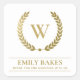GOLD LAUREL WREATH INITIAL LOGO BUSINESS THANK YOU SQUARE STICKER