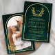 Gold Laurel Wreath Leaves Emerald Green Wedding Invitation