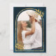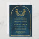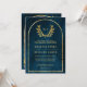 Gold Laurel Wreath Leaves Ocean Blue Wedding Invitation