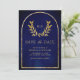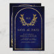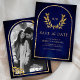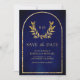Gold Laurel Wreath Leaves Royal Blue Wedding Save The Date