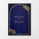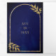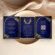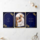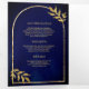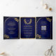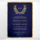 Gold Laurel Wreath Leaves Royal Blue Wedding Tri-Fold Invitation