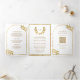 Gold Laurel Wreath Leaves White Wedding Tri-Fold Invitation