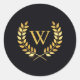 Gold Laurel Wreath Monogram Classic Round Sticker
