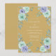 This design features a rich gold backdrop adorned with lush watercolor roses in soft lavender and mint green hues. Delicately painted eucalyptus leaves and botanical sprigs accent the layout, creating a refined and elegant aesthetic. The artwork balances warm metallic tones with cool-toned floral elements for a romantic atmosphere.