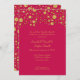 Matching Rehearsal dinner invitations perfect for formal sit down dinners hosted by the groom's parents. NOTE: This is a flat printed invitation, there is no glitter or metal foil used. Effects are graphically produced. DESIGN COLLECTION: Elegant, sparkly, fun celebration in the works? This random sized polka dots confetti wedding invitation let's your guests know a party is happening! Gorgeous luxurious multi sized glittering golden sparkles rain down in random patterns with twinkling sparkle stars. Perfect for a wide range of ceremony styles, from formal black tie to rustic country, outdoors under the twinkling lights. You can customise this for any type of party by changing the easy to use template fields. Colours: deep dark begonia fuchsia hot pink and gold