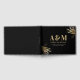 Gold Leaf Greenery Black Monogram Elegant Wedding Guest Book