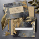 Immerse your wedding in a tapestry of abstract impasto beauty – delicate gold leaves scatter like whispered promises across a charcoal canvas. A symphony of light and darkness dances in each stroke, creating a tactile masterpiece that resonates with modern brides seeking both boldness and intimacy.