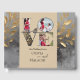 Immerse your wedding in a tapestry of abstract impasto beauty – delicate gold leaves scatter like whispered promises across a charcoal canvas. A symphony of light and darkness dances in each stroke, creating a tactile masterpiece that resonates with modern brides seeking both boldness and intimacy.