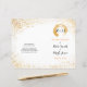 'Gold Leaf Spry' wedding collection design brings cheek to chic. Sparkly simple, minimalist design. A double sided wedding stationary, announcement text on one site and on the other side the bride and groom a duo-gram initials on top of a gold leaf seal. There are 2 versions of a gold leaf seal; A hollow circled brush stroke, and the other is like a messy ink spill.