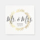 Gold Leaf Wreath & Black and White Script Wedding Napkin