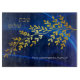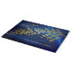 This elegant Challah Board depicts the Hebrew words "Shabbat Shalom". The gold coloured leaves float on a background of dark blue light waves.