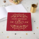 Elegant golden leafy swirls and joined golden hearts on a red background 50th Wedding Anniversary Guest Book. On the reverse side - golden diamond pattern. The background colour can be changed.