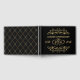 Elegant golden leafy swirls and joined golden hearts on a black background 50th Wedding Anniversary Guest Book. On the reverse side - golden diamond pattern. The background colour can be changed.