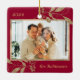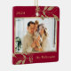 Gold Leaves Family Photo Red Christmas Ceramic Ornament