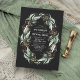 Watercolor greenery and gold leaves wreath black wedding invitation
