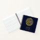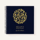 Chic and elegant notebook featuring a round composition of faux gold foil branches and leaves on a classic navy blue background.