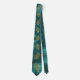 Gold Leaves on Teal Blue Satin look Tie
