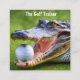 Cleaver golf theme business cards with a graphic of an Alligator with a golf ball in it's mouth and simple two side calling card layout you can customise online.