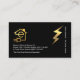 Overleaf, in a black cover, card details are over on the left with the gold logo placed at the top. After this comes the contact details and a slogan caption which you can change. The gold lightning is emitted from your prestigious name which is held vertically on the right side of the card.