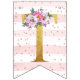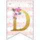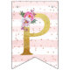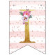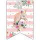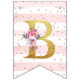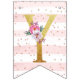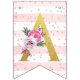 A beautiful unicorns surrounded by delicate flowers. The background of each part has pastel pink and white watercolor brush strokes and sparkling golden or rose glitter dots. Each part has a gold letter with foil effect, forming the words "happy birthday". Ideal for Baby Shower and Children's Birthday parties.