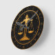 A luxurious golden Libra scales statue set against a deep black cosmic background, surrounded by a celestial circle. This artwork embodies balance, astrology, and mystery, perfect for brands seeking elegant, symbolic imagery.