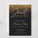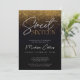 This modern sweet 16 invitation features gold sparkle lights and a trendy calligraphy script font on a black background. A perfect design for a glamourous sweet 16 birthday party celebration. Edit this sweet 16 invitation template yourself using the online editing tools.