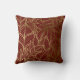 Gold Line Leaf Pattern on Maroon Red Throw Pillow